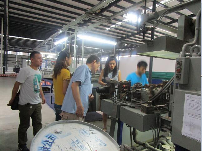 随后,大家来到了拉丝车间及包漆车间,常务副总戴建崇为大家详细介绍了漆包线从原材料到成品的生产流程并带领大家到正在为重庆和诚生产QY线的操作机台参观。
