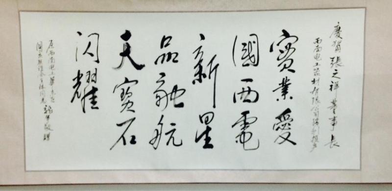 退休老员工们通过常务副总戴建崇向董事长张之祥表达了感激之情并赠送业余书法爱好者董盛喜书法作品一副,通过书法对西南电工的未来发展寄予了美好祝愿。