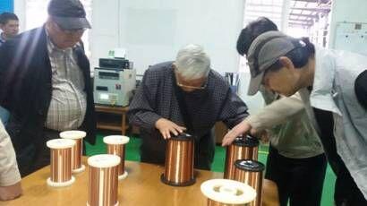 老领导们非常关心公司发展,不断地关切询问:现在生产的机器是哪里制造的、能生产哪些规格的产品、这个工艺和以前有什么区别等等。公司领导认真倾听并仔细耐心地向老领导们解答着每一个问题。特别是听到现在公司已经有7个品种的漆包圆铜线获得专利认证;8个系列品种通过了美国“UL”安全认证;产品规格能从Φ3.00㎜细至Φ0.018㎜,比头发丝还细的多时,老领导们更是不断的交口称赞,对公司管理给予了高度评价并充分肯定了40多年来西电人自主开发和研制新产品的能力。