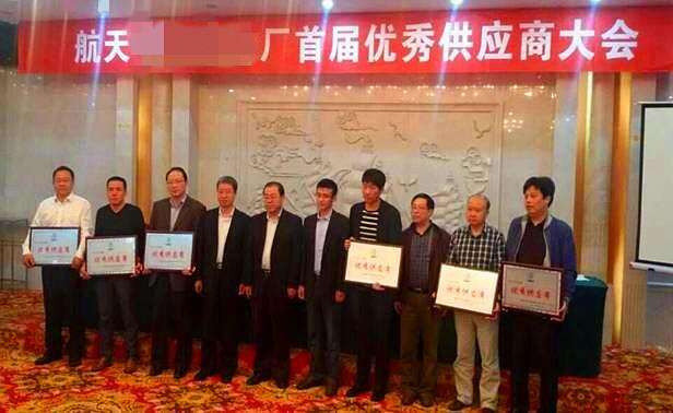 获航天某厂“优秀供应商”荣誉称号