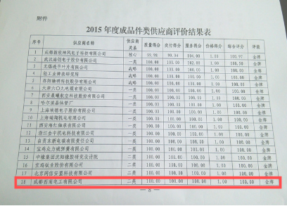 供应商绩效结果分为金牌、银牌、铜牌、黄牌与红牌五个级别,每年评定一次。我公司在2015年被评定为金牌供应商。